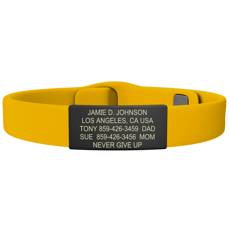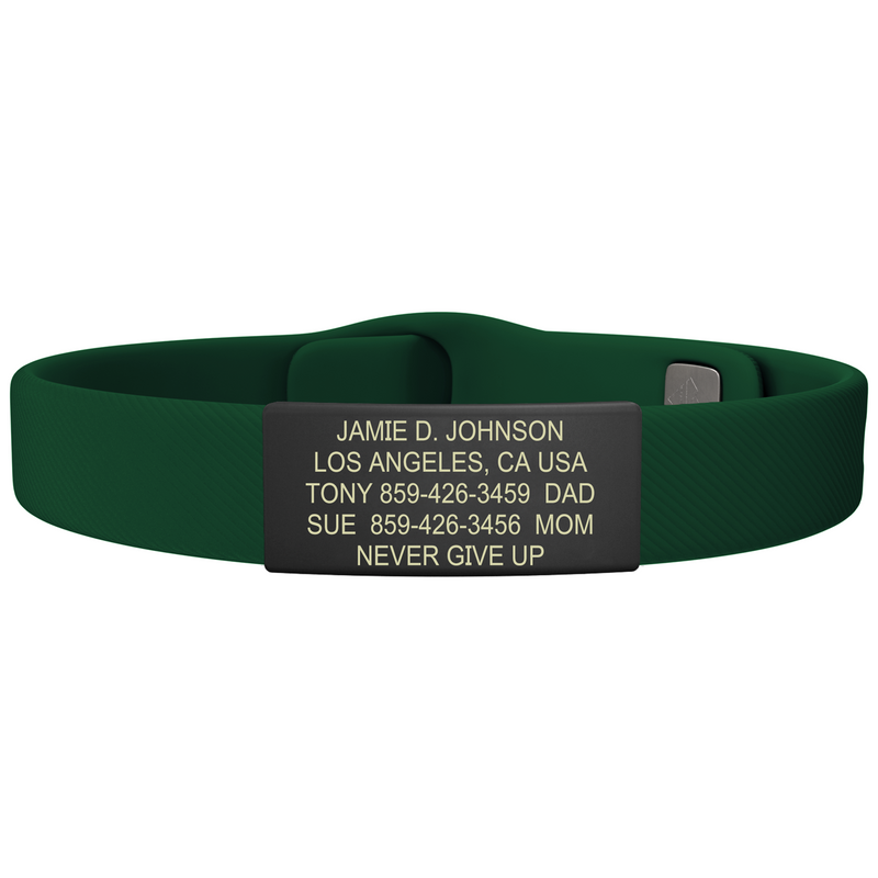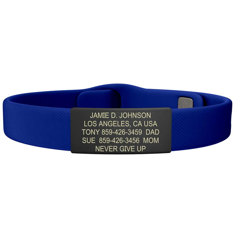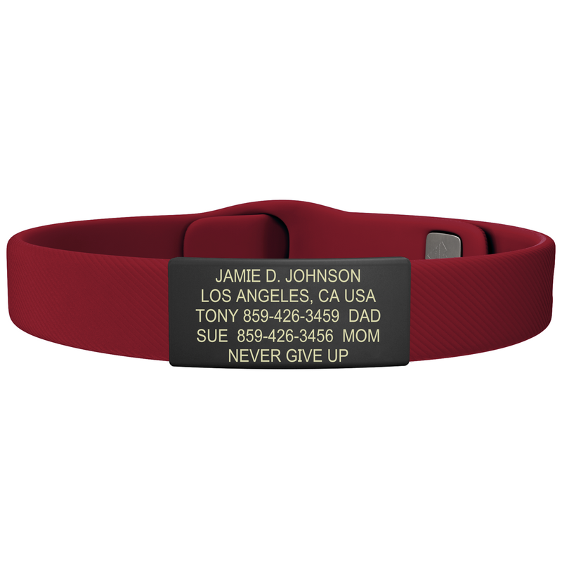 The top-shelf choice in wrist ID. Customize till your heart’s content with a smorgasbord of faceplates, band types, sizes, and colors for an ID that’s uniquely you. Perfect for everyday wear and up for any adventure. Up to 5 or 6 lines of custom text.