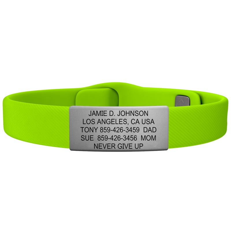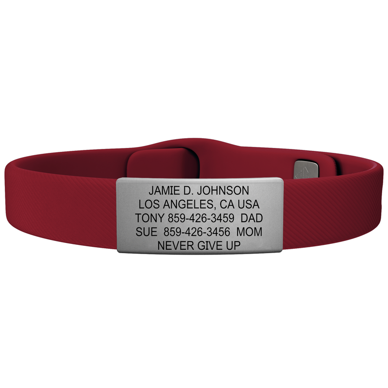 The top-shelf choice in wrist ID. Customize till your heart’s content with a smorgasbord of faceplates, band types, sizes, and colors for an ID that’s uniquely you. Perfect for everyday wear and up for any adventure. Up to 5 or 6 lines of custom text.